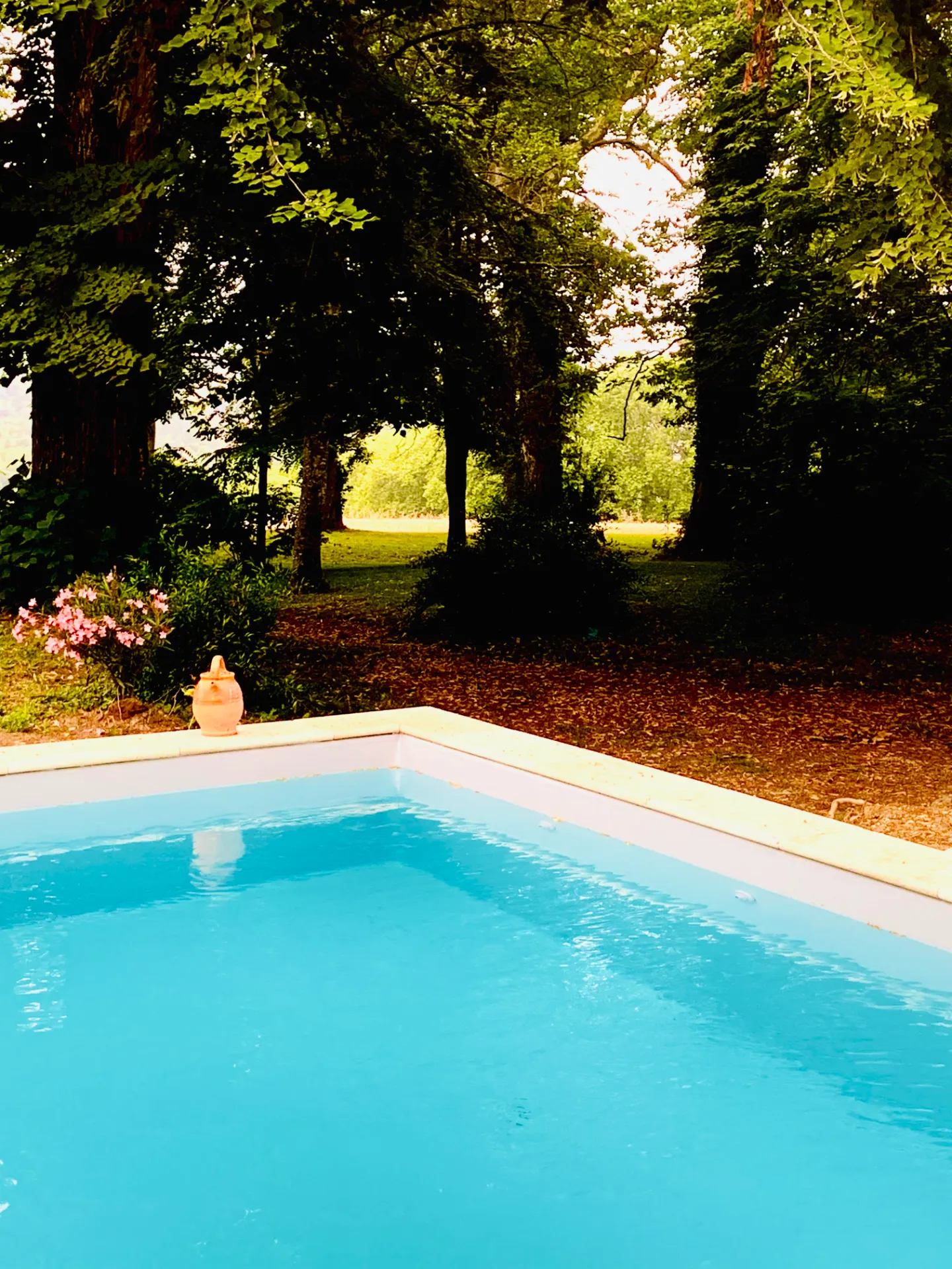 Un vaste parc avec piscine, aire de jeux et détente en plein air, propice aux moments de convivialité.